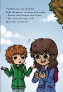 Vännerna är på väg till skolan. Lydia plockar upp en kastanj från marken. – Du med dina kastanjer, säger Emma. – Visst är den fin? säger Lydia. Hon lägger den i fickan. 9