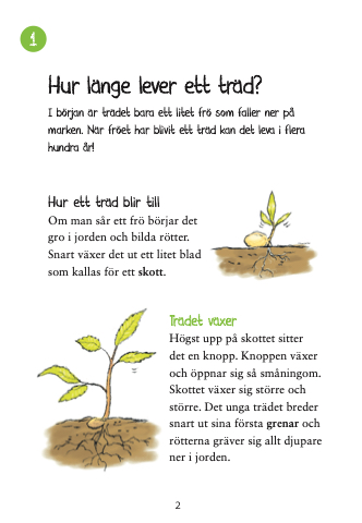 det en knopp. Knoppen växer och öppnar sig så småningom. Skottet växer sig större och större. Det unga trädet breder snart ut sina första grenar och rötterna gräver sig allt djupare ner i jorden.
